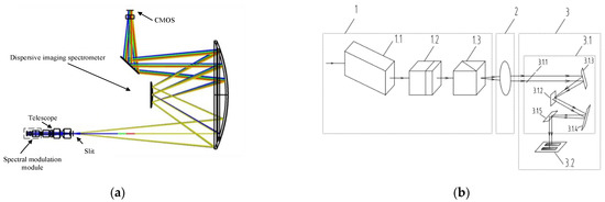 The imaging spectropolarimeter (ISP) can simultaneously capture spatial, spectral, and polarization information of a target [1,2,3,4], thus overcoming the defects of temporal and spatial misregistration compared with traditional temporal and spatial modulation measurements. Owing to these advantages, ISP has important applications in many fields, including remote sensing [5], environmental monitoring [6], material analysis [7,8], and biomedicine [1,9,10]. The key component in ISP is the polarization modulation module, consisting of two multiple-order retarders and a polarizer, a technology first introduced by Nordsieck [11] and subsequently developed into a popular research direction by Oka and Iannarilli et al. [12,13]. This technology uses a modulation module to generate sinusoidal carriers of different frequencies, encoding the state of polarization to an output spectrum. Since the polarization information is modulated at different channels in the spectral domain, the ISP is equipped with snapshot measurement capabilities. Furthermore, the advantages of ISP include high polarization measurement sensitivity and no moving parts in the system.