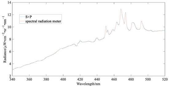 Comparison of measured radiance for “S + P” and the spectral radiation meter.