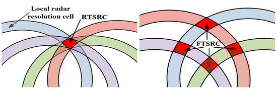 Nevertheless, in reality, the higher localization accuracy of the radar system is not always better, especially when the detected target is a false one. This phenomenon also appears in the multiple radar system, which can prevent the effectiveness of the spatial diversity gain. The process can be intuitively shown in Figure 3, in which the abbreviations of RTSRC and FTSRC denote the real target SRC and the false target SRC, respectively. As a result, when locating multiple targets, it is necessary to discriminate the authenticity of each target simultaneously in order to improve resource utilization.