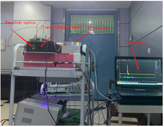 The actual environment and the Lidar system are different from the simulation. On the one hand, the simulation is idealized. That is, the noise type cannot represent the actual scene. On the other hand, the waveform emitted by the laser source is not a standard Gaussian waveform but a Gaussian-like waveform with a steep front and a slow back. Therefore, we built a Lidar system to verify the proposed method’s performance in the actual scene. The principle of the pulse Lidar ranging system is shown in Figure 4 in this paper. The laser emits laser pulses through the beam splitter with a beam splitter ratio of 95/5. The beam split ratio of 95 is used as the measuring light path to reach the target through the MEMS micro-mirror. The detector receives the waveform reflected by the target. The beam splitter ratio of 5 is used as the local oscillator light and reaches the detector as a reference clock signal. The signal processing part calculates the time difference between the transmitted and the echo pulses, and the built-up pulse Lidar ranging system is shown in Figure 5. The relevant parameters of the system are listed in Table 2.