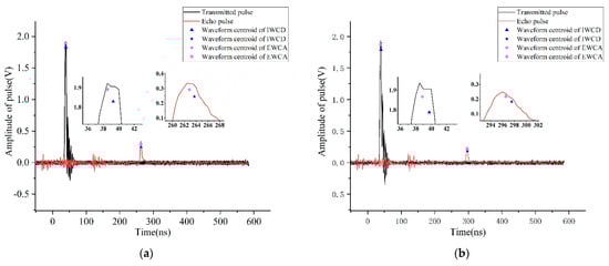 In Figure 2a, the transmitted and the echo pulse signals are shown. The pulse signal after the finite impulse response (FIR) digital filter is shown in Figure 2b. Adding the FIR can eliminate the high-order frequency and the direct current component. It is more helpful for further research and analysis.