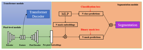 - Cheng, B.; Schwing, A.G.; Kirillov, A. Per-Pixel Classification is Not All You Need for Semantic Segmentation. Adv. Neural Inf. Processing Syst. 2021, 34, 17864–17875. [Google Scholar]
