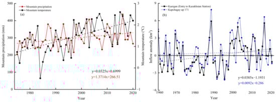 Changes in precipitation and temperature (a) and inflow anomaly (b) in the upper Ili River.