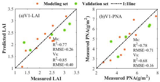| V2 | Tillering | PRI–LAI–PNA | 0.85 | 0.36 | 0.87 | 0.32 | |
