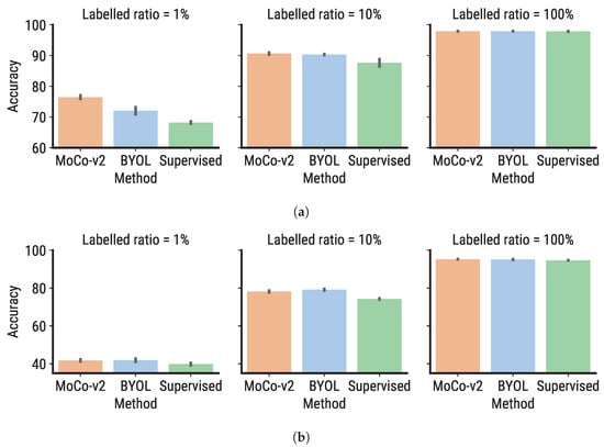 | MoCo-v2 [67] | 50.83 ± 0.39 | 80.71 ± 0.16 | 93.45 ± 0.38 | 82.67 ± 0.06 | 93.06 ± 0.18 | 98.15 ± 0.07 |