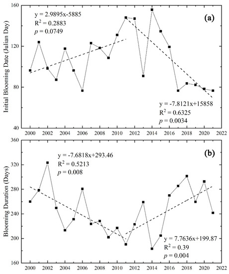 | Duration of Bloom | r | 0.04 | −0.29 | −0.17 | −0.31 | −0.12 | 0.00 |