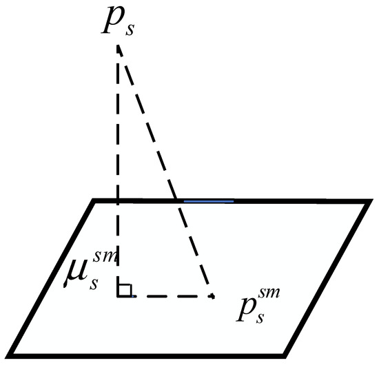 In the same way, each planar point in the current scan, we search for five points on the local map to form a plane. However, the difference is that the eigenvector corresponding to the minimum eigenvalue of the five-point covariance matrix is the normal vector corresponding to this plane. As shown in the Figure 5, is the main direction of the normal vector. is the geometric center of five planar points.
