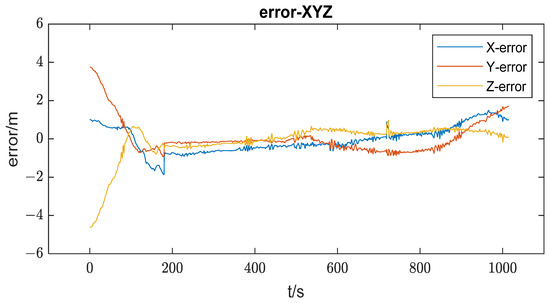 Figure 13 shows error changes in three directions throughout the period. We can see that the system has an obvious deviation at the start time. That is because the optimization process takes time to converge and correct. At the same time, local map takes time to build. After a long run, the error is remained low in our system. It verifies the robustness and high precision of the work.