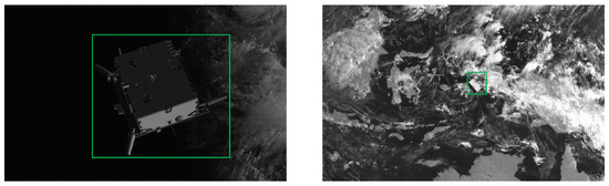 The Spacecraft PosE Estimation Dataset (SPEED) [13] is the first publicly available dataset for space target pose estimation, mostly consisting of high-resolution synthetic grayscale images of the Tango satellite, as shown in Figure 4. There are 12,000 training images with ground truth pose labels and 2998 test images without ground truth labels. The ground truth pose label consists of a unit quaternion and a translation vector, describing the relative orientation and position of the Tango satellite with respect to the camera frame.