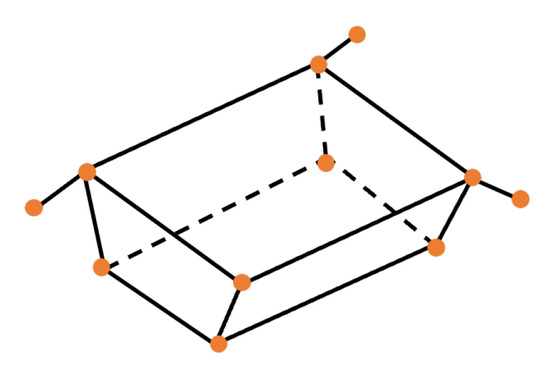 where, for i-th landmark, the sum of the reprojection error is minimized over a set of images where the i-th landmark is visible. In Equation (19), is a scale factor denoting the depth of the i-th landmark in the j-th image, is a known camera intrinsic matrix, and is a ground truth camera pose of the j-th image. The optimization variable in Equation (19) is the 3D coordinate vector . The routine of the triangulateMultiview function in MATLAB is used to solve this optimization problem. Figure 6 visualizes the 11 selected 3D landmarks and the reconstructed wireframe model of the Tango satellite.