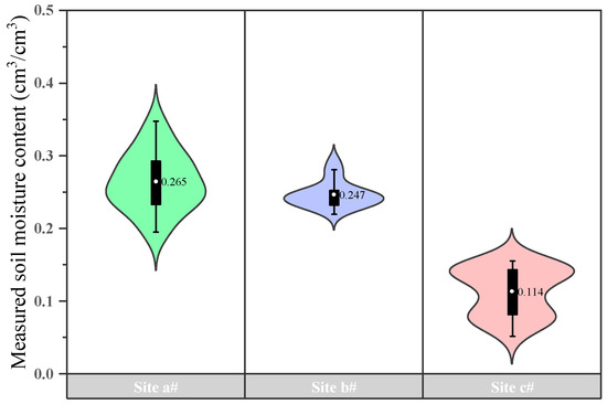 Violin diagram of soil moisture contents measured in the field campaign (The unit of average soil moisture content is cm3/cm3).