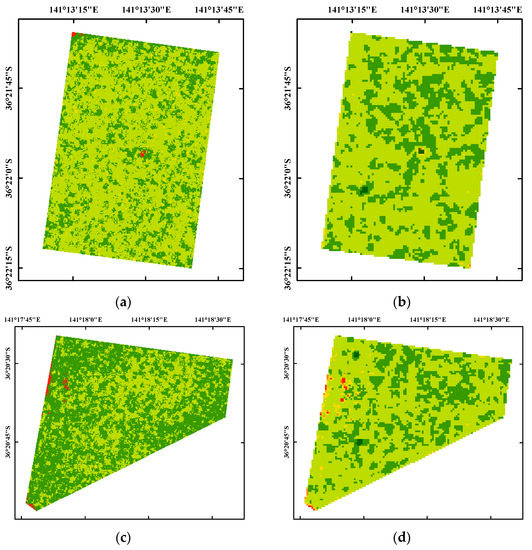 Soil moisture is a fundamental environmental variable in the global energy, carbon and water exchange. It is of great relevance for many studies, such as crop yield estimation, drought monitoring, evapotranspiration and agricultural management. However, it is difficult to obtain accurate soil moisture that represents large areas and capture its local-to-regional variability using conventional ground-sensor based methods. Soil moisture during the growing season is an important parameter for agricultural practice and management decisions in arid and semi-arid regions [1]. Meanwhile, spatial and temporal soil moisture estimation is critical for agricultural and hydrological applications. Several studies and modeling have been proposed to explore the mechanisms of spatiotemporal variability of soil moisture [2,3,4]. The coefficient of spatial variation of soil moisture (CV) has been widely used to identify external control on spatiotemporal variability and stability of soil moisture, which has an inverse relationship with the mean temporal soil moisture. However, multi-temporal remotely sensed data and field observations are needed to capture the spatiotemporal variability of soil moisture. In recent years, there has been prolonged drought and a rash of deadly bushfires related to surface soil moisture and fuel moisture in Australia. Therefore, monitoring soil moisture effectively is important for assessing drought and guiding cropping decisions in Australia.