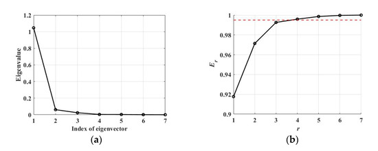 is a diagonal matrix with eigenvalues , corresponding to ai as the elements. Additionally, to exclude redundant features, the normalized sum of the top r eigenvalues Er is calculated thus, as in a previous paper [18]: