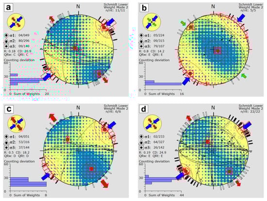 - Delvaux, D.; Sperner, B. New aspects of tectonic stress inversion with reference to the TENSOR program. Geol. Soc. London Spéc. Publ. 2003, 212, 75–100. [Google Scholar] [CrossRef]