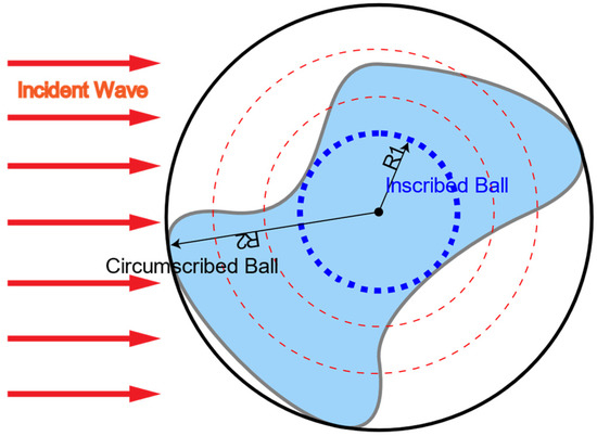 In the actual calculation process of the IIM T-matrix method, the non-spherical particles are regarded as an inhomogeneous sphere and discretized into a certain number of inhomogeneous spherical shells from R0 to RN in the spherical coordinate system (R1 and R2 are the radii of the inscribed and circumscribed sphere of the particle), as shown in Figure 1. To improve the modeling efficiency, the T matrix of the inscribed sphere is firstly calculated by employing the Lorenz–Mie theory, and then, the T matrix is updated layer by layer using the invariant imbedding technique (see Equation (7)).