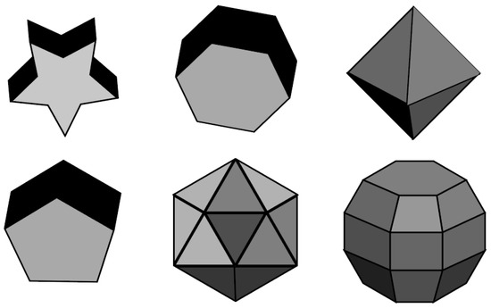 The particles with N-fold symmetric geometry (After the particle rotates a fixed angle around an axis perpendicular to the center of the particle plane, it completely coincides with the original particle) are generally taken as the approximation of non-spherical particles, such as a hexagonal prism, disk-shaped particles, super ellipsoid, etc., [24,29], as shown in Figure 2. In this section, we focus on deriving the symmetrical properties of the U matrix, and on improving the implementation of the IIM T-matrix method.