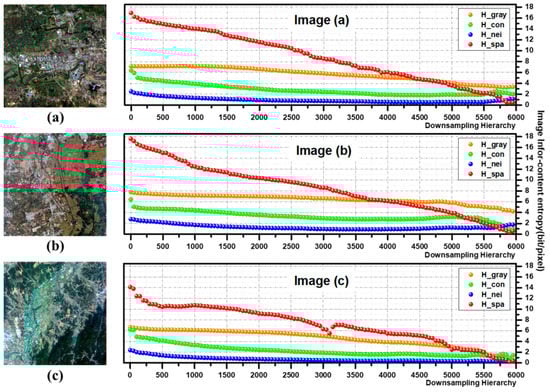 - A framework for measuring the information content of remote sensing images based on Shannon’s information theory is developed. In this framework, the information of an image is defined as the uncertainty of the pixels’ properties and spatial locations. Instead of simply measuring single feature information, multiple features including grayscale, contrast, neighborhood topology, and spatial distribution are modeled to calculate the information content of images. The spatial structure information content of the image at both the overall and local scales is measured as two parts of the comprehensive information.