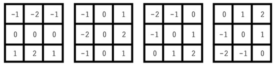 In order to retain the outline information, the output of the side window mean filtering should be as close as possible to the input at the outline. Therefore, in the output of the side window mean filtering, with the minimum Euclidean distance from the input pixel value is selected as the input of the Sobel operators. The Sobel operators used is shown in Figure 3.