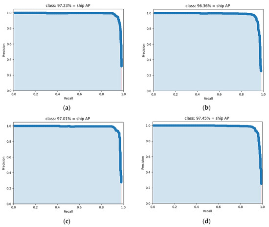 Precision-recall curves of four ablation experiments: (a) experiment-1; (b) experiment-2; (c) experiment-3; and (d) experiment-4.