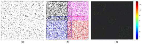 - In the real data experiments, we set to select PSs. The NC-PGA method preserves 32,937 PSs and 98,663 arcs in DTN. While the BBN-PGA method retains PSs and arcs in the four sub-block DTNs, respectively. Figure 13 show the DTN of NC-PGA and BBN-PGA methods. The running time of the WLS step for NC-PGA and BBN-PGA is 2971.83 s and 3.99 s, respectively. In the processing speed of the WLS step, the BBN-PGA method is about 744 times faster than the NC-PGA method, which is consistent with the above analysis. Table 5 shows the overall running time comparison of NC-PGA and BBN-PGA. The results show that BBN-PGA takes 27.6 s and NC-PGA takes 3081.8 s. The BBN-PGA method is about 110 times faster than the NC-PGA method.