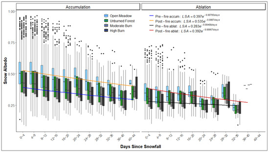 3.4. Post-Fire Daily Landscape Snow Albedo Decay