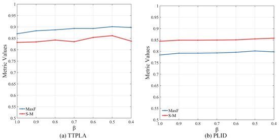 As can be seen in Figure 8, we set and test the metric values on TTPLA dataset and PLID dataset. It can be seen that the network has better performance when we set .