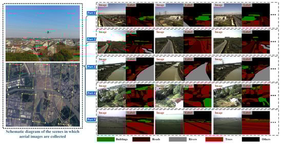 The numbers of pixels in all classes are extremely unbalanced, which increases the difficulty of semantic segmentation for aerial images. A total 11 state-of-the-art semantic segmentation networks are adopted for a fair comparison. The proposed semantic segmentation network is also built with the PyTorch framework. The batch size and initial learning rate are set as 4 and 0.01, respectively. The learning rate of the global–local attention and decoder module are set as ten times of backbone network. Other training settings and parameter settings are consistent with the training of power line detection.