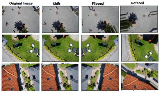 We performed the necessary pre-processing in order to keep the consistency of the segmentation model during training. Moreover, to maintain variation in image appearances, we performed image normalization, such as managing the brightness and contrast of an image. Lastly, the data set is shuffled into training and testing sample images. The overall data set utilized in this article mainly contains 400 training samples and 200 testing samples. It is a comparatively small data set for the deep learning model training. Hence, we implement data augmentation techniques to preserve and obtain a moderate amount of sample images and to evade the over-fitting difficulty by ensuring the adequacy, fairness, and sufficiency in the variance and robustness of the architectures. For classification architectures, we resize the input images and the ground truth mask to . We applied real-time data augmentation techniques to the data set, similar to []. As a result, images in the aerial data set are flipped, shifted, and rotated as described in Figure 3. This provides a considerably greater number of images for the training of models and architectures.