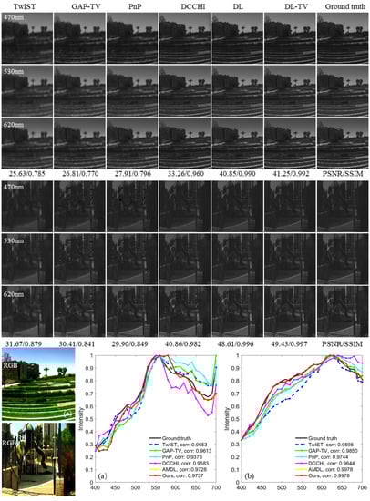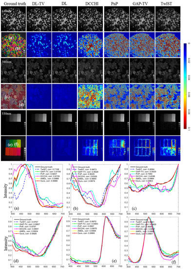 - Zheng, S.; Liu, Y.; Meng, Z.; Qiao, M.; Tong, Z.; Yang, X.; Han, S.; Yuan, X. Deep plug-and-play priors for spectral snapshot compressive imaging. Photonics Res. 2021, 9, B18–B29. [Google Scholar] [CrossRef]