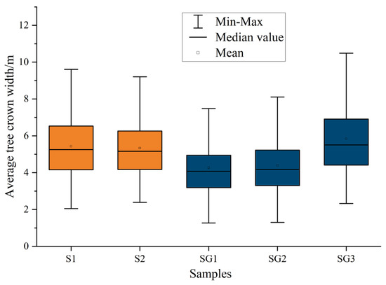 where, S is the area of each object. The reference value of the crown width is obtained using the visual interpretation results.