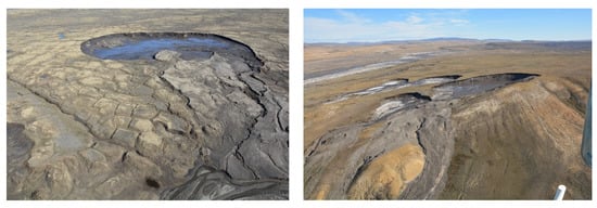 | [33] | Active geomorphological features in permafrost terrain. They consist of steep ice-rich headwall and a mudflow of a gentle gradient. | Banks of northern rivers | |