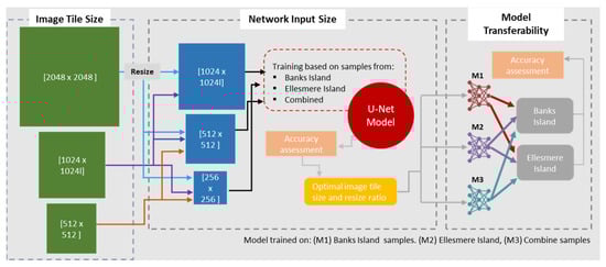 | Banks Island | 256 × 256 | 475 | 50 | 16 | 10−4 for epochs 1 to 25 and 10−5 from epoch 26 to 50. |