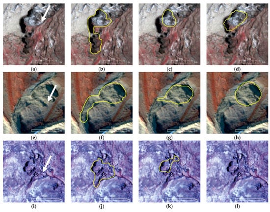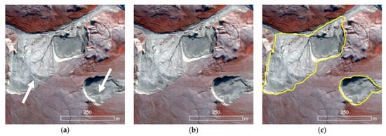 - Huang, L.; Liu, L.; Luo, J.; Lin, Z.; Niu, F. Automatically quantifying evolution of retrogressive thaw slumps in Beiluhe (Tibetan Plateau) from multi-temporal CubeSat images. Int. J. Appl. Earth Obs. Geoinf. 2021, 102, 102399. [Google Scholar] [CrossRef]