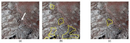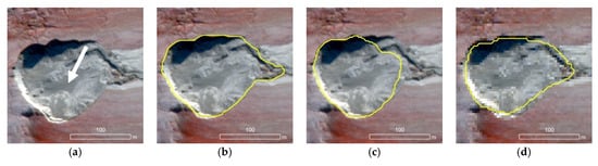 | [61] | Fosheim peninsula, Ellesmere Island, NWT in Canada | SPOT Panchromatic | Optical | 10 m | Manual comparison. Image enhancement using histogram stretching, | 16 sites |