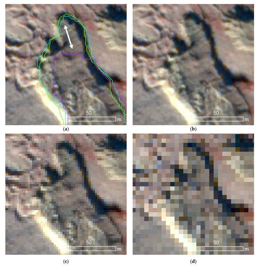| [63] | Herschel Island in Canada | IKONOS satellite imagery | Optical | 2 m DEM | Photogrammetric processing | Data from 1952, 1970, 2000 |