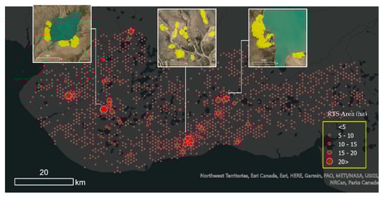 | [47] | RTS are abrupt permafrost disturbances that result from slope failure after thawing of ice-rich permafrost. Fluvial processes, thermo-erosion or mass wasting following heavy precipitation events and the exposure of ice-rich permafrost | RTSs vary in size, ranging from under 0.15 ha to mega slumps of 52 ha and more | Ice-rich yedoma regions or formerly glaciated areas that still contain permafrost-preserved buried glacial ice |