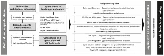Flowchart of the cultural assessment procedure applied to heritage sites. All processes are described in detail in Section 3.1 and Section 3.2.