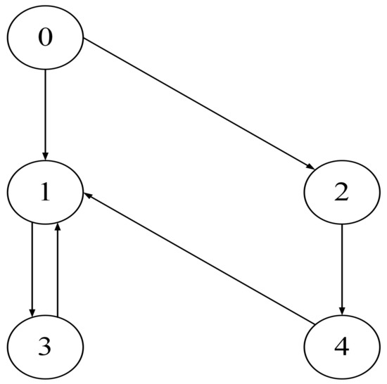 In this section, the results of the numerical simulation for verifying the effectiveness of the state estimator and control law designed in this paper are presented. The directed communication topology is described in Figure 2, where .