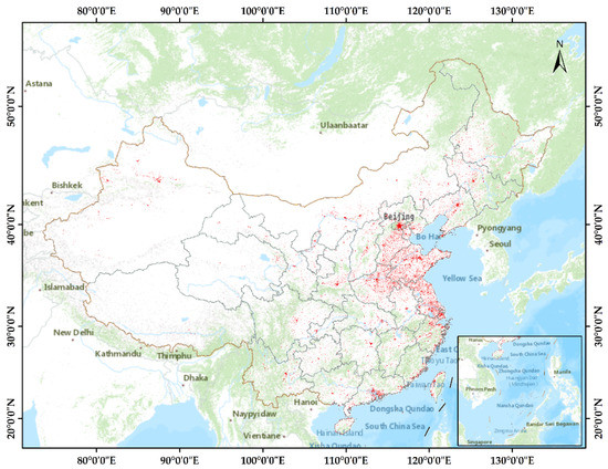 Urbanization is a significant trend in global economic and social development. According to United Nations statistics [1,2,3], by 2050, the urban population will increase from 55% to 68%, and more than half of the population will live in cities. The environmental, economic, political, social, and cultural impacts of urbanization are profound [4,5]. Built-up area (BA) is an essential type of land cover for the urbanization indicator. The extraction of BA is beneficial to guide and evaluate the urbanization process. BA is defined as the land surface covered by building structures that are used for the shelter of humans or economic activities. Remote sensing has gradually become an important tool for obtaining information on the extent and change of urban land due to its ability to regularly observe the surface [6,7,8,9,10,11,12,13,14,15,16,17,18,19,20,21,22,23,24,25,26,27,28,29,30,31,32,33,34,35,36,37,38,39,40,41,42,43,44,45,46].