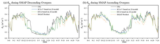 In addition to improving the default retrieval algorithms implemented by current satellite missions, researchers also improved the current SM retrieval accuracy by developing new retrieval algorithms. Wang et al. [58,80] developed a new SM retrieval algorithm based on the physical-based Tor Vergata model to retrieve SM in the Maqu network based on the combination of Aquarius active and passive observations. The obtained SM retrievals were found to be able to reflect SM variations in the study area, providing a new way for the simultaneous use of active and passive observations to retrieve SM. Recently, Zeng et al. [81] developed a physical-based SM Index (SMI), which was shown to be able to reproduce measured θliq dynamics for both frozen and thawed conditions in the Naqu and Pali networks. The developed SMI shows great potential to produce better θliq retrievals on the TP based on the SMAP measurements.