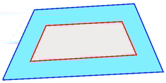 After global adjustment, the algorithm still cannot eliminate all visible seam color differences. Therefore, the local adjustment of the Poisson editing was also performed in []. A 20 pixel wide border bar was set in the algorithm, and the outer edge (Figure 4, light blue) and inner edge (Figure 4, red) of this strip were used as boundary conditions of the Poisson equation; the mean value of the pixel color of the image assigned to the patch and the neighbor patch was set to a fixed value of the color value of each outer edge pixel. The value of each inner edge pixel is fixed to its current color. If the patch is too small, the inner edge is omitted.