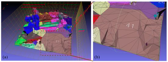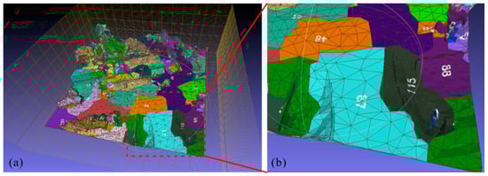 Figure 8. Best view ID of the simplified mesh facets: (a) whole drawing; (b) partial enlarged drawing.