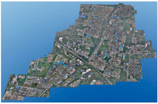 The method proposed in this paper was embedded into the IMS software, which is a reality modeling software that was independently developed by the authors at the Chinese Academy of Surveying and Mapping. Three-dimensional mesh model data reconstructed by oblique photography in the town of Tengzhou city, Shandong Province, China, were used for experimental verification. The detailed parameters of the experimental data are shown in Table 1, and the reconstruction scope is shown in Figure 10. The experimental data cover the main types of 3D models such as buildings, vegetation, and roads. The selection of this area is of general significance for experimental verification. The experimental running environment is a workstation with the Windows 10 64 bit operating system, an Intel Core (TM) I9-10900X CPU with a dominant frequency of 3.70 GHz, and 128 GB of memory.