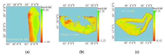 The Appalachian Bay (AB), Virgin Islands (VI), and Cat Island (CI) of the United States were selected as the study areas. Table 1 lists the multispectral remote sensing image information of each study area.