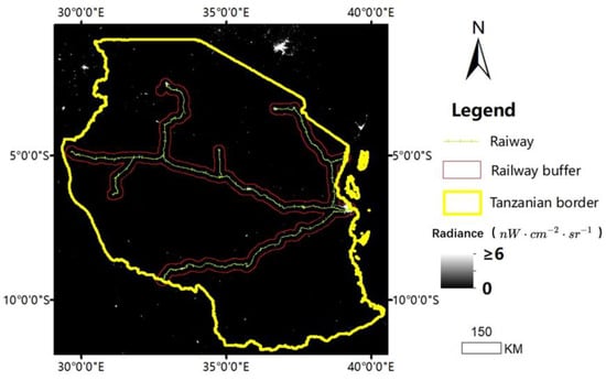 Tanzania is a lower-middle income country in East Africa [13], consisting of Tanganyika and Zanzibar. With a stable political situation and abundant natural resources [10], Tanzania is one of the fastest-growing countries in the world. However, there is significant regional economic disparity in Tanzania. First of all, Dar es Salaam, Tanzania’s economic and industrial center, is growing much faster than the rest of the country [14]. In addition, because of the colonial history as well as the long-term agricultural and trade patterns, there is a significant north–south economic disparity in mainland Tanzania. Finally, the railway system has long been responsible for the majority of Tanzania’s transportation, and has a considerable aggregation influence on the economy [15]. However, Tanzania’s economic assessment studies based on traditional statistics are mostly conducted at the national level [16,17], which cannot reflect the regional economic disparity within the country.