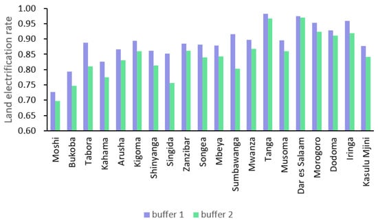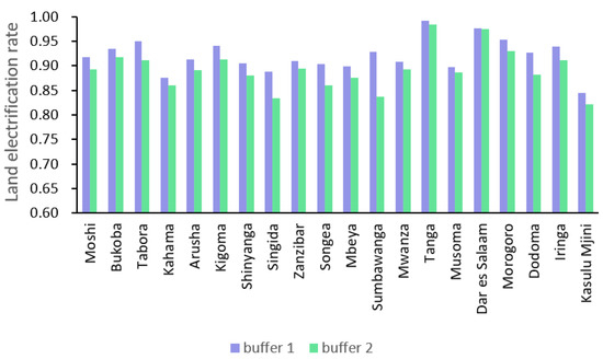 Two groups of buffers’ (buffer 1 and buffer 2) land electrification rates in 2019.