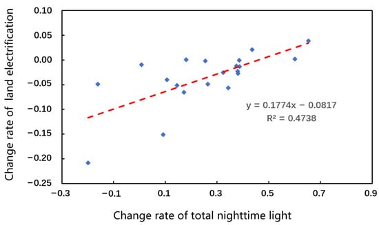 The scatter diagram showing the relationship between the change rate of total nighttime light and the change rate of land electrification.
