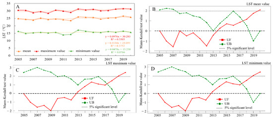 3.1.1. Interannual Variation Characteristics of LST