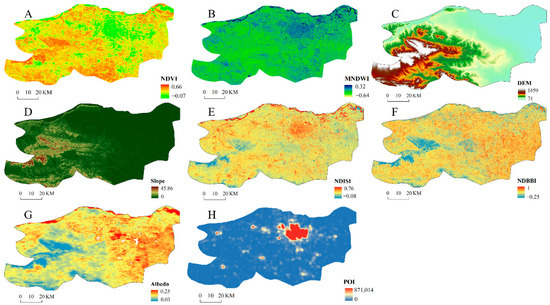 | --- | NDVI | MNDWI | DEM | Slope | NDISI | NDBBI | Albedo | POI |