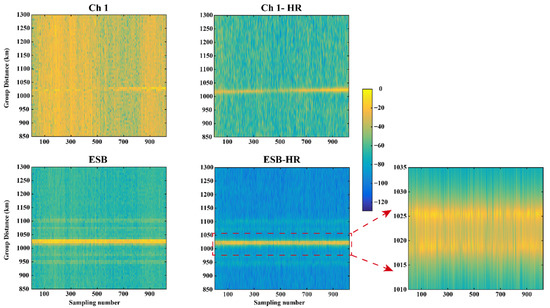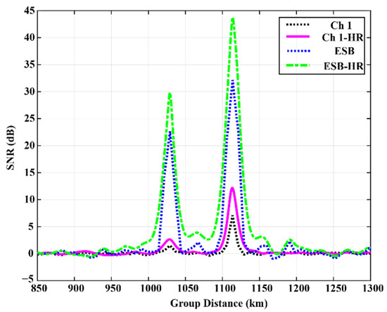 It can be seen from Figure 11, compared with the echo signal of Ch 1, the SNR of ESB-HR at the group distance of 1029 km is improved by 28.28 dB, and by 36.62 dB at 1114 km. The improvement of SNR is obvious.